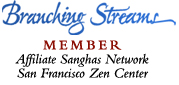 In November 2011, two priests came from the San Francisco Zen Center to lead Mid City Zen in formal practice, Koji Acquaviva Dreher, who was here through 2016, and Rev. Michaela Bono who led the sangha until 2020. We are affiliated with the Shunryu Suzuki Roshi lineage of Soto Zen, and are a member of the Branching Streams affiliate network.